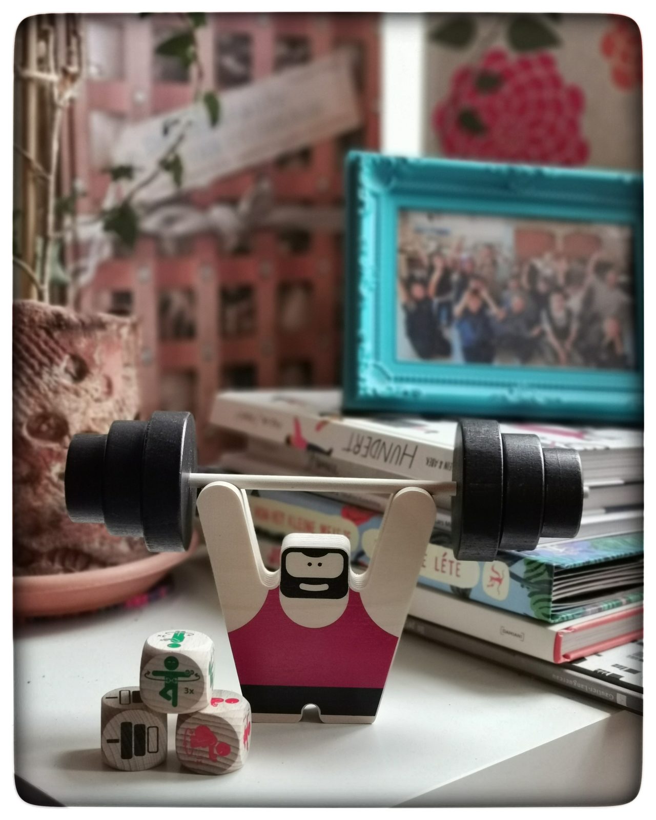 Dieser sympa Holzmann hilft Dir beim fit werden! Würfle Dir die entsprechende Übung zusammen und los geht’s! Schaffst Du es die verschiedenen Aufgaben durchzuführen ohne dass die Gewichte von der Hantel purzeln? Koordinationsvermögen und Gleichgewicht ist hier gefragt.