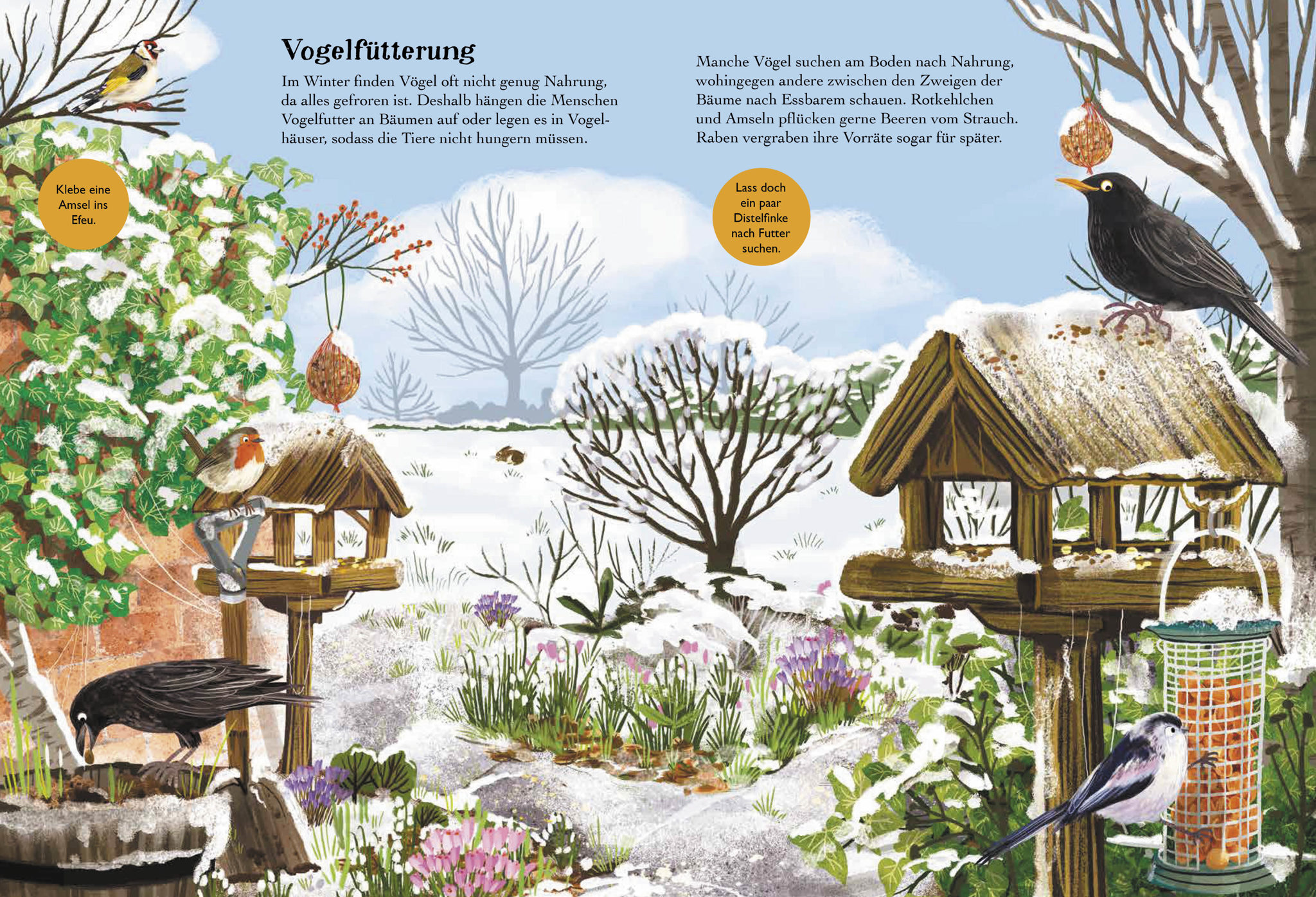 Über 120 Sticker zum Ergänzen der verschiedenen Lebensräume – vom Ententeich bis zum Nest in luftiger Höhe.
