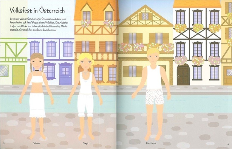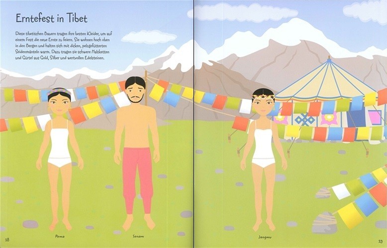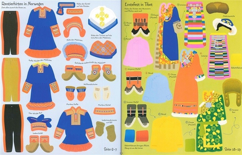Die Figuren in diesem Buch kommen aus ganz verschiedenen Ländern. Ziehe ihnen mit den über 250 farbenfrohen Stickern ihre Kleidung an – von seidenen Saris für eine Hochzeit in Indien bis hin zum eleganten spanischen Flamencokostüm. Eine Weltkarte zeigt Dir, wo sie alle zu Hause sind.