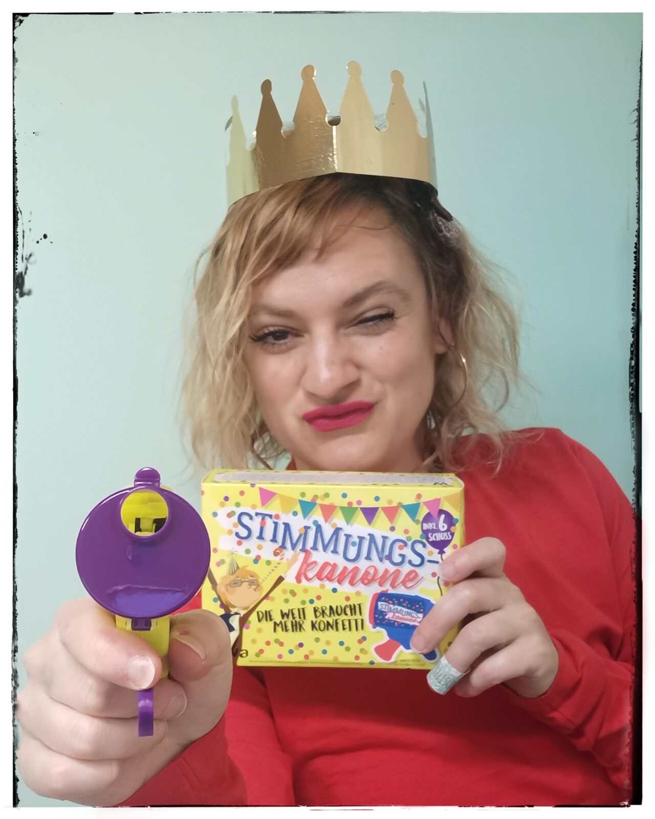 Corona schlägt uns allen aufs Gemüt. Obendrauf hat jede:r noch mit seinen eigenen Sörgeli zu kämpfen, sei es endlos graues Wetter, eine recht unschöne Diagnose oder dass mal wieder Deine Milch im WG-Kühlschrank ausgetrunken wurde und Du Deinen Kafi nun schwarz trinken musst – es ist Zeit dem Trübsal Adieu zu sagen und mit der praktischen Stimmungskanone kunterbuntes Konfetti und gute Laune in die Welt zu schiessen!