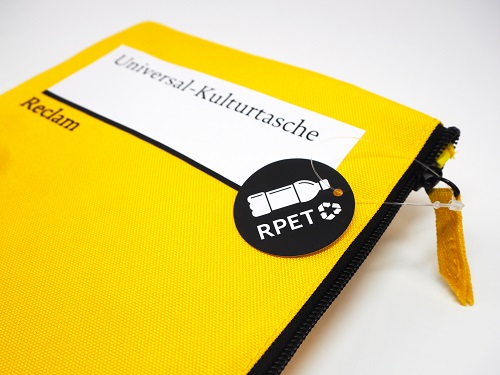 - Klassisch gelb und trotzdem grün: Die neue Universal-Kulturtasche besteht aus recycelten PET-Flaschen.