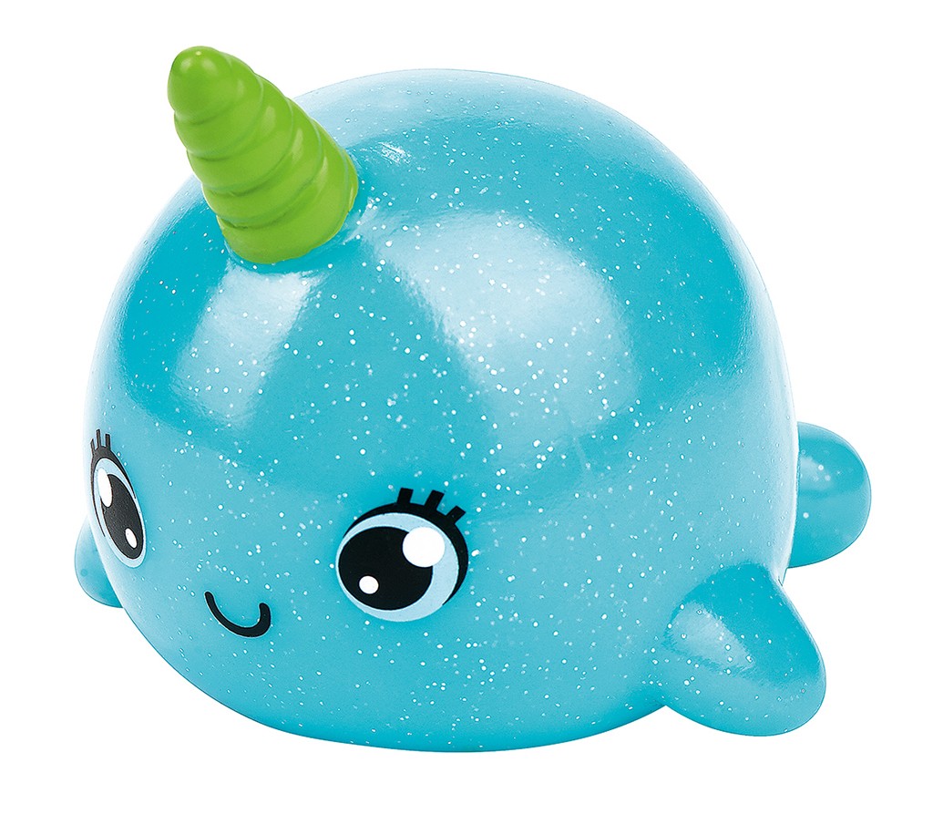 In der Badewanne ist der leuchtende Bade-Narwal in seinem Element. Der glitzernde Wal mit niedlichen Glubschaugen und freundlichem Lächeln blinkt bei Wasserkontakt und schwimmt auf der Wasseroberfläche. Den Narwal gibt es in drei tollen Farben: Rosa, Violett oder Blau immer mit Glitzer. Ein supersüßer Badespass!