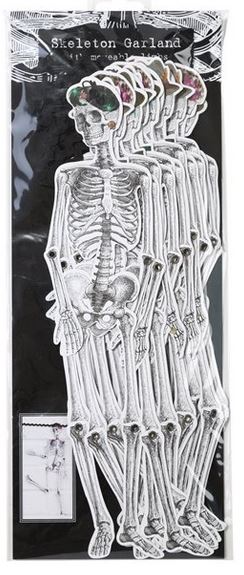 Du bist nicht so der rosa-Schmetterling-Typ? Du stehst mehr auf Friedhofromantik und tiefschwarzen Humor? Dann ist die Skeleton Garland von Talking Tables für Dich gemacht! 3 Meter gruseliger Spass für über Deinen Esstisch bei der Halloweenparty /über den Fernseher bei Deiner Horror-Movie-Night /übers Bett für schaurig schöne Träume/ins Klo zur Belustigung Deiner Gäste.